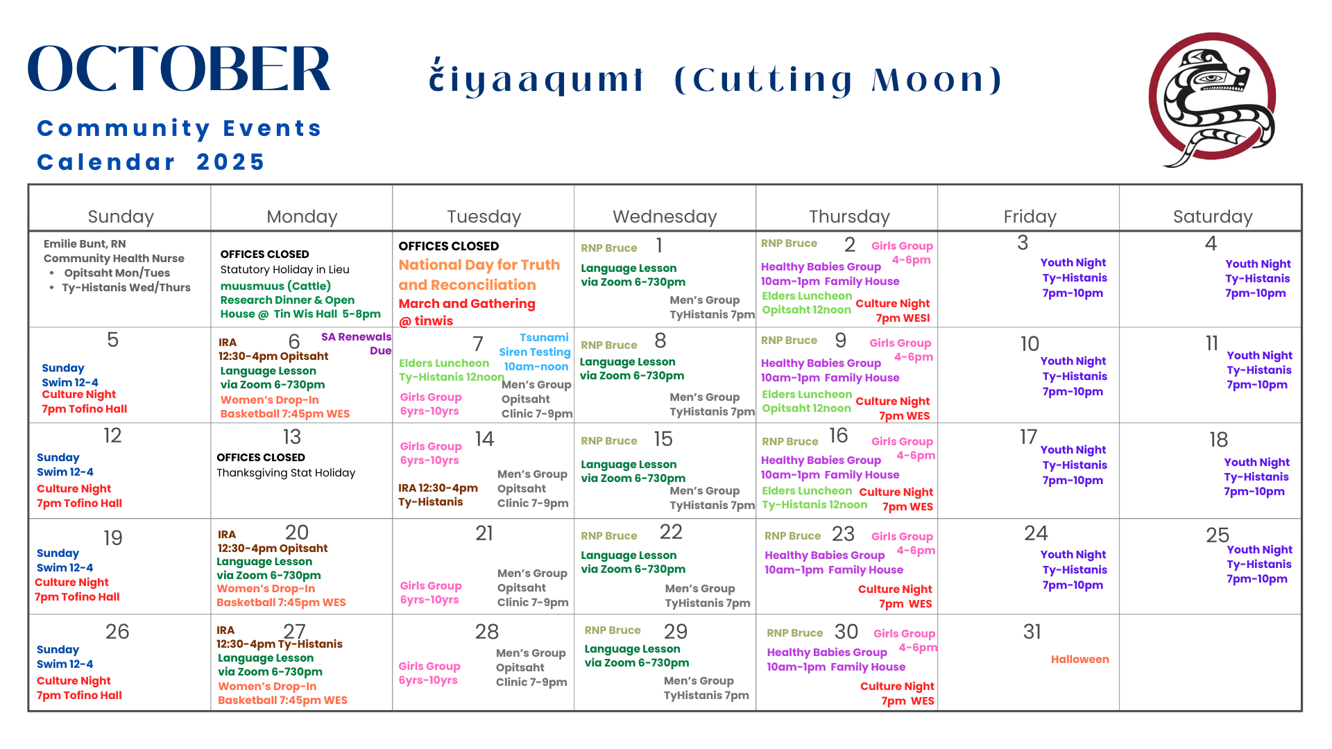 Tla-o-qui-aht Health Department consists of outreach to health services for TFN Members. This also includes access to our Medical Travel Assistance for TFN Patients. Other resources might be health related workshops, events, and information. Contact our health department employees for more information, or updates.