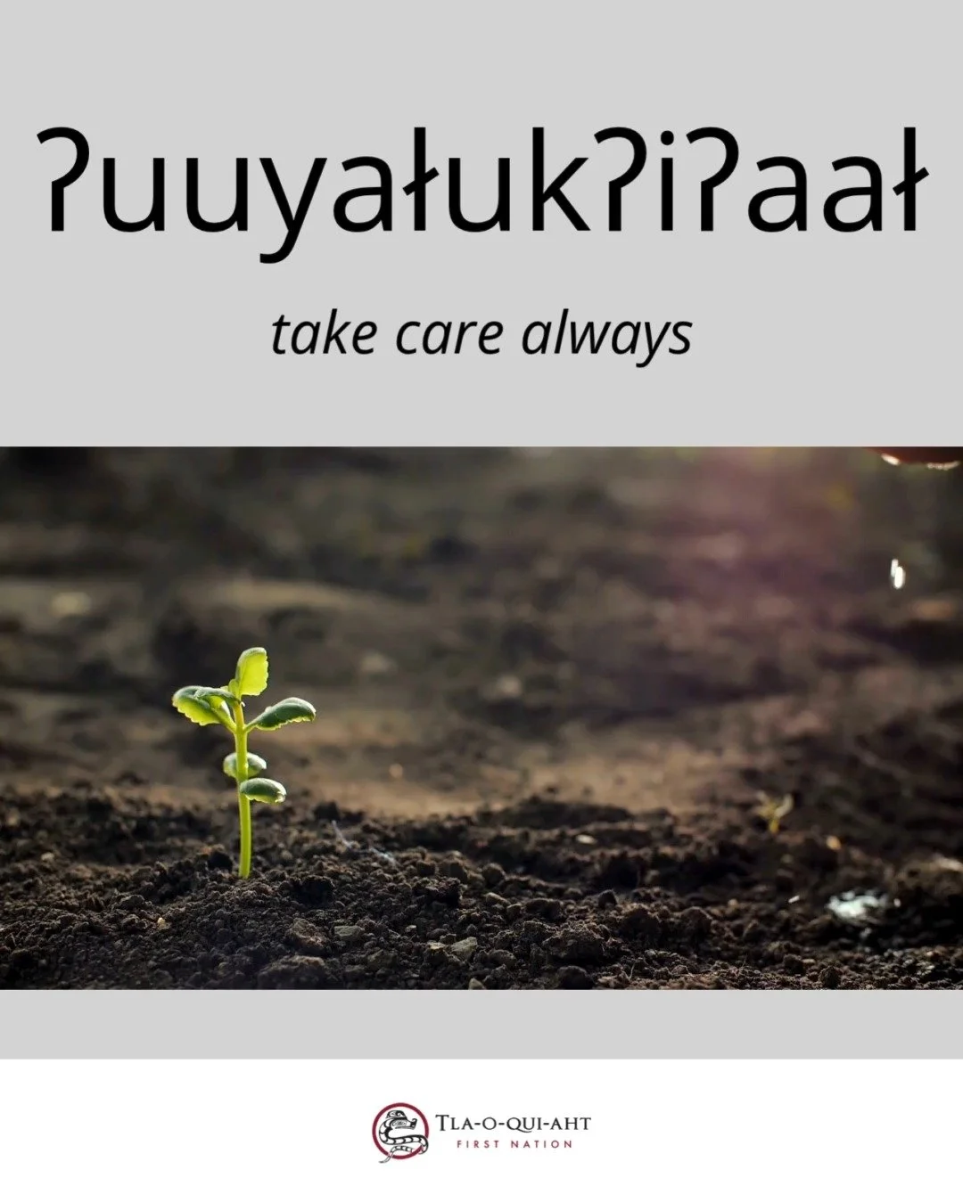 The Tla-o-qui-aht Language Department shares and encourages people and organizations to respectfully use the following for communications within the territory. Assist us in increasing the visibility of our language. Your efforts in doing so will support language revitalization. You are invited to cut and paste these greetings into your emails.