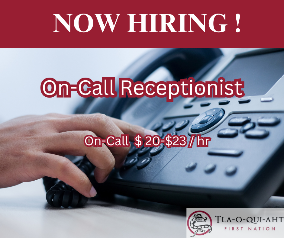 Tla-o-qui-aht First Nations November 26, 2025 NOW HIRING On-Call Receptionist Tla-o-qui-aht First Nations November 26, 2025