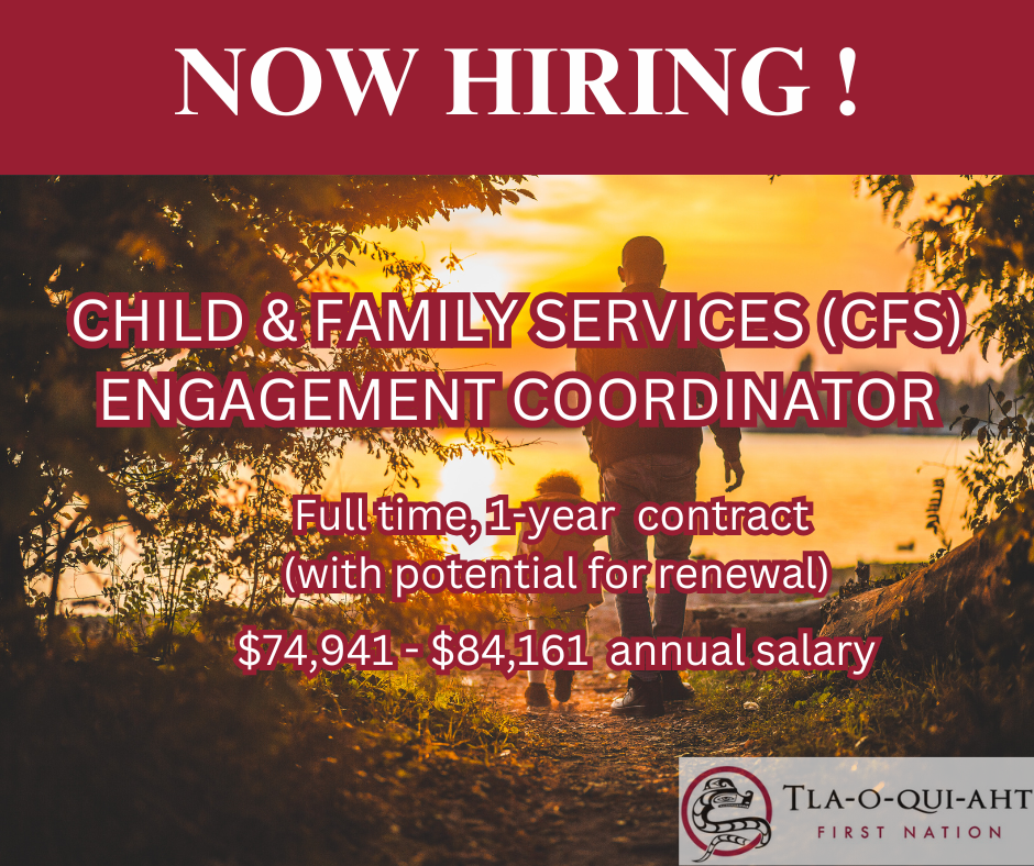 Tla-o-qui-aht First Nations July 25, 2025 NOW HIRING CFS Engagement Coordinator Tla-o-qui-aht First Nations July 25, 2025