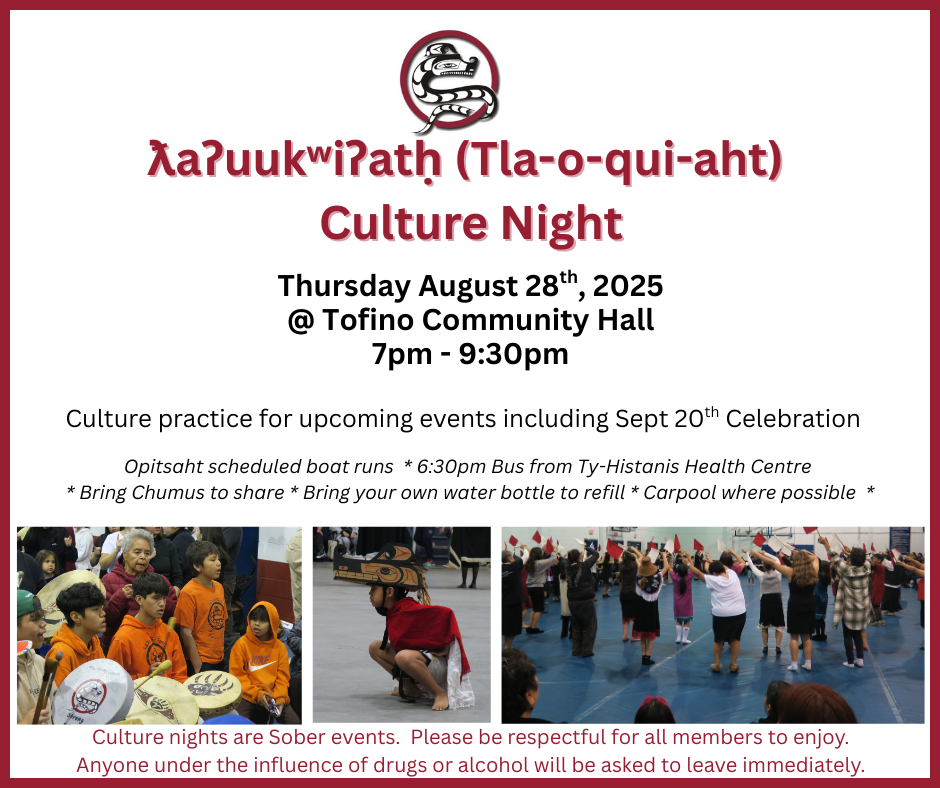 Tla-o-qui-aht First Nations August 28, 2025 Culture Practice Thurs Aug 28, 2025 Tla-o-qui-aht First Nations August 28, 2025