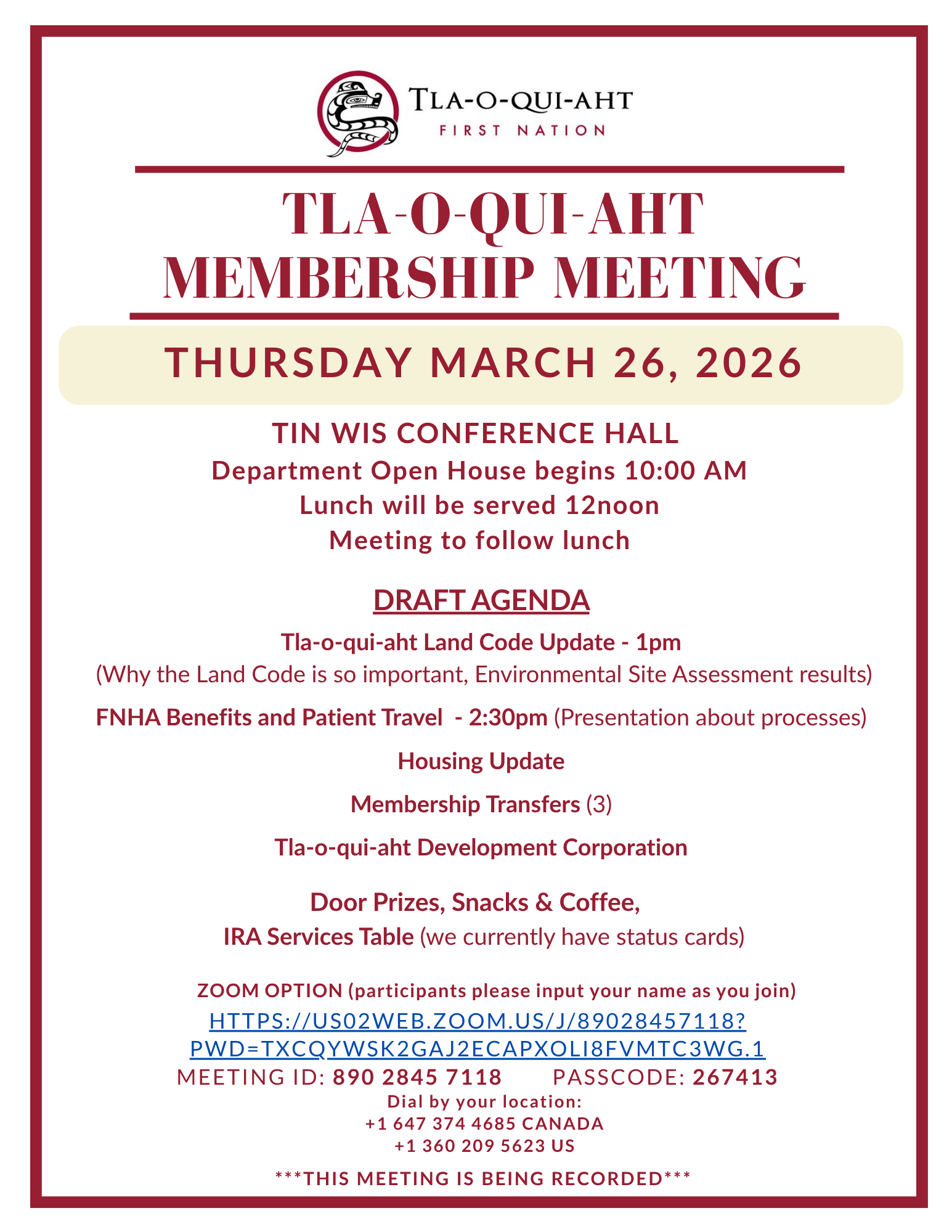 New Date! TLA-O-QUI-AHT MEMBERSHIP MEETING Thursday March 26, 2026
