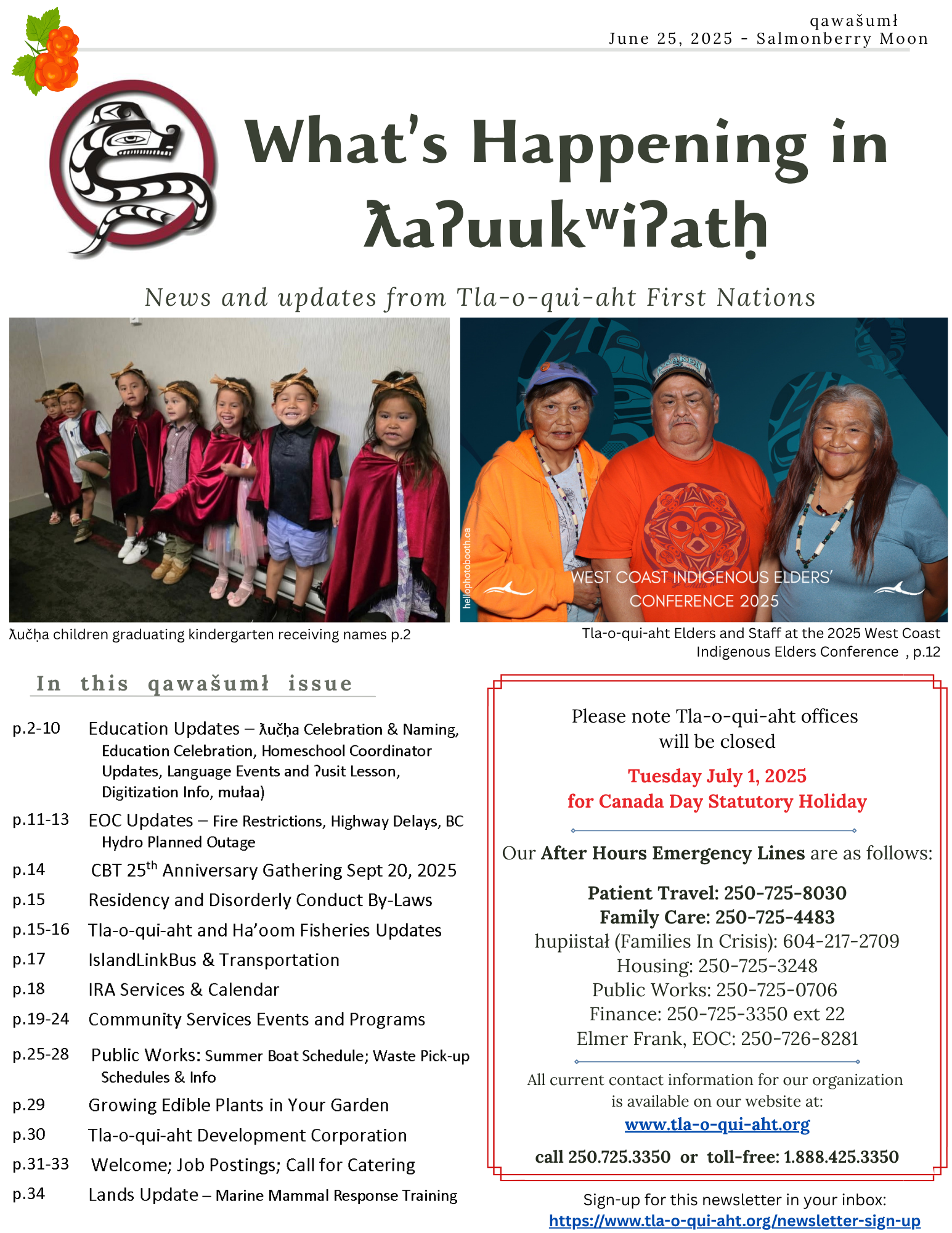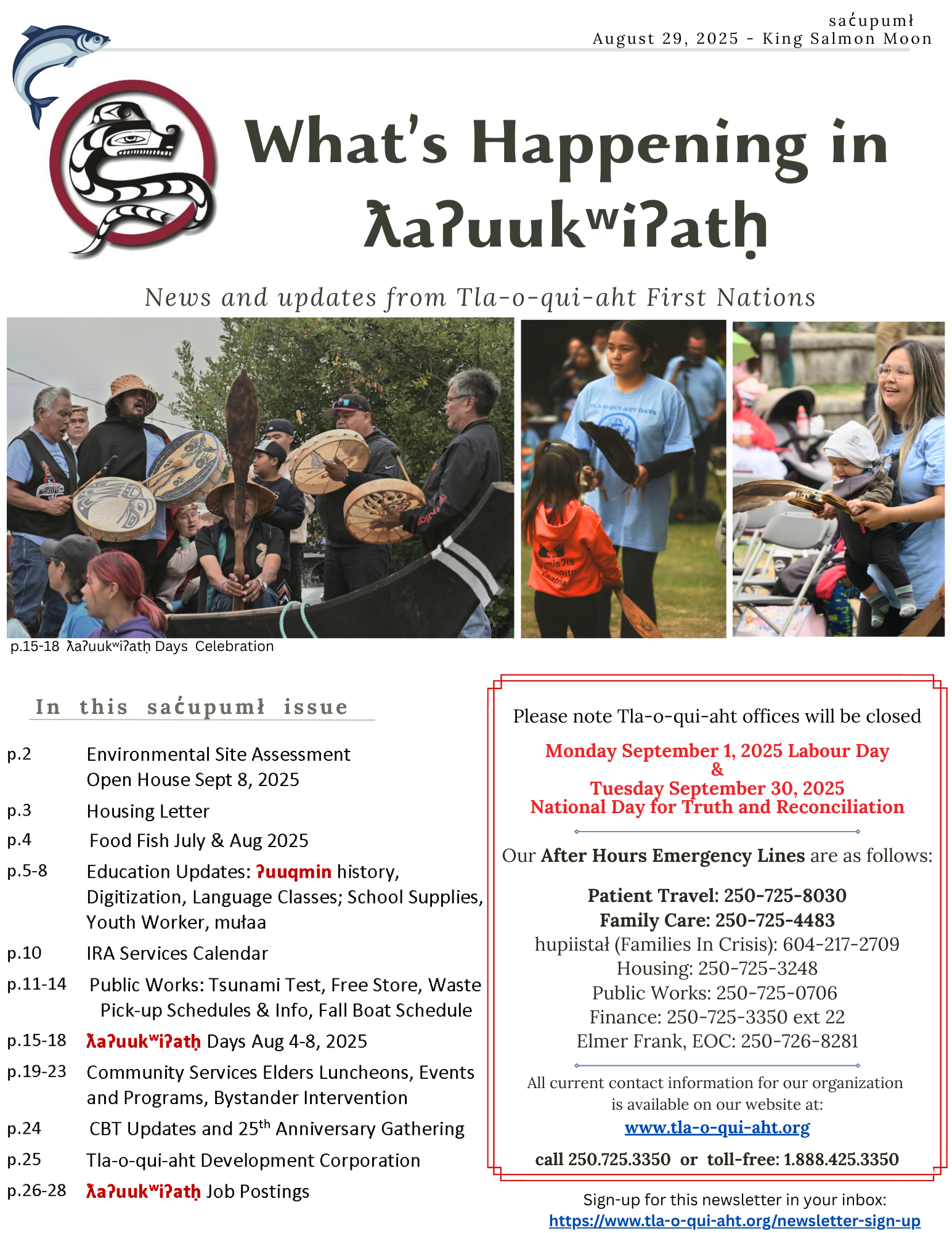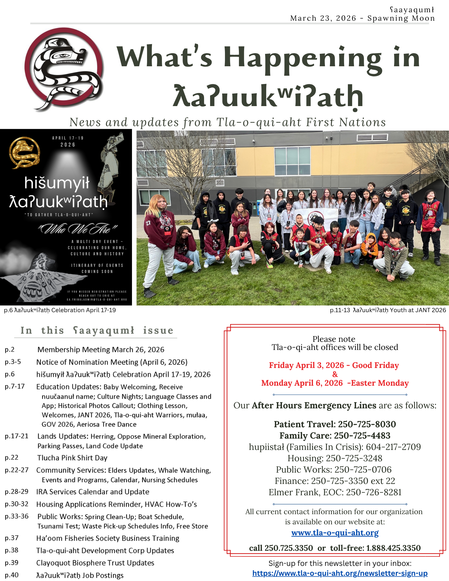 What’s Happening in ƛaʔuukʷiʔatḥ monthly newsletter